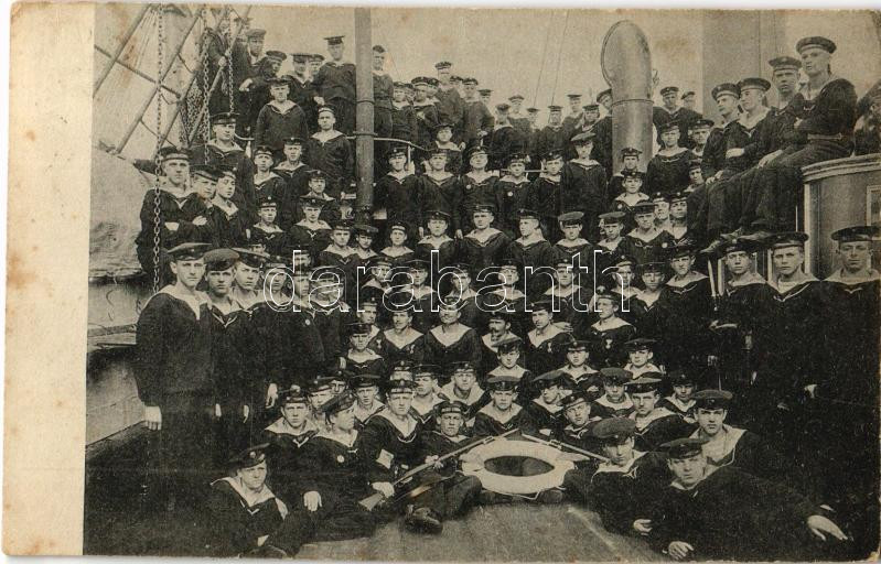 K.u.K. Kriegsmarine SMS Schwarzenberg (Laudon) / Cs. és királyi haditengerészeti fregattjának matrózai a fedélzeten, csoportkép / Austro-Hungarian Navy frigate's group picture on deck (fl)