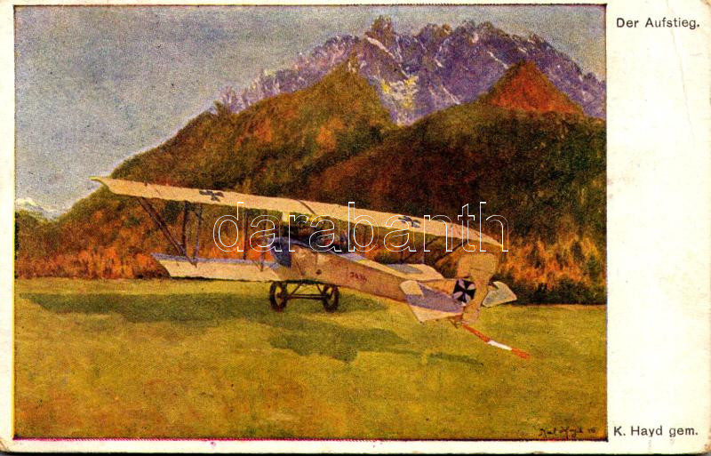 1916 Der Aufstieg / WWI Austro-Hungarian K.u.K. military art postcard, military aircraft ascending. Offizielle Karte für Rotes Kreuz, Kriegsfürsorgeamt Krieghilfsbüro Nr. 503. s: K. Hayd (Rb)
