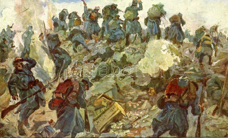 6. Juli 1915. 4. Baon. des Inf.-Rgts. Nr. 53. im Kampfe am Krn. Offizielle Karte für Rotes Kreuz, Kriegsfürsorgeamt, Kriegshilfsbüro Nr. 289. / WWI Austro-Hungarian K.u.K. military art postcard s: K. Fahringer
