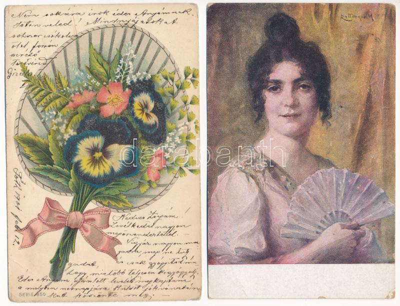 Leírás: LEGYEZŐK - 2 db RÉGI képeslap / FANS - 2 pre-1945 postcards