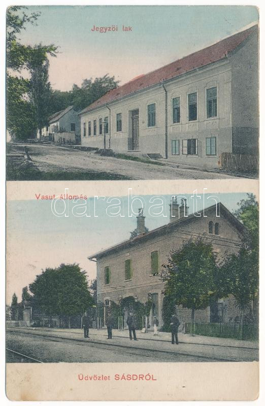 1911 Sásd, Jegyzői lak, vasútállomás. Pichler Testvérek kiadása (EK) https://www.darabanth.com/hu/471-Gyorsarveres/471.0/Kepeslapok/Magyarorszag~2000005/1911-Sasd-Jegyzoi-lak-vasutallomas-Pichler-Testverek-kiadasa-EK~II3189609