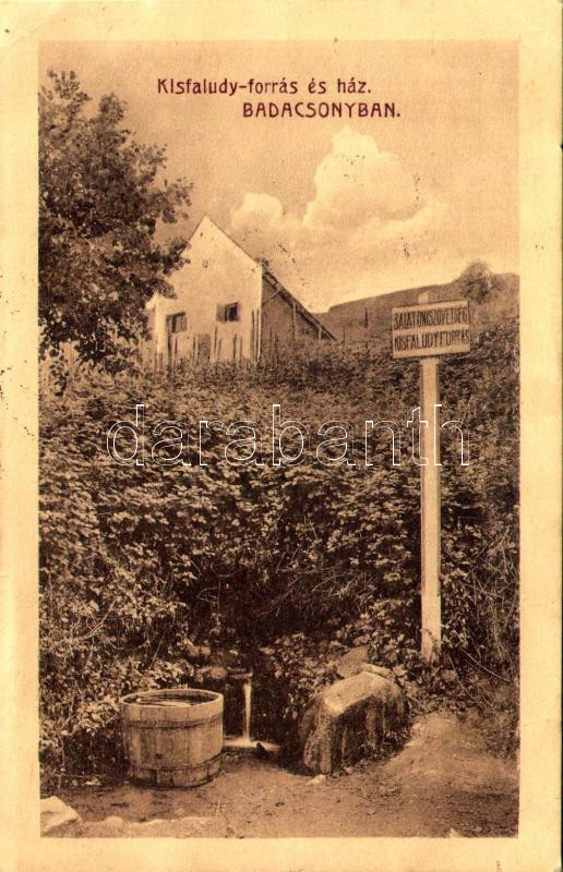 1914 Badacsony, Kisfaludy-forrás és ház (kis szakadás / small tear) https://www.darabanth.com/hu/471-Gyorsarveres/471.0/Kepeslapok/Magyarorszag~2000005/1914-Badacsony-Kisfaludy-forras-es-haz-kis-szakadas-small-tear~II3192571