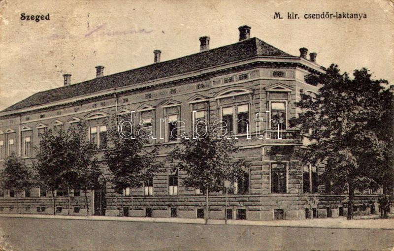 1916 Szeged, M. kir. csendőrlaktanya. Grünwald Hermann kiadása (Rb) https://www.darabanth.com/hu/471-Gyorsarveres/471.0/Kepeslapok/Magyarorszag~2000005/1916-Szeged-M-kir-csendorlaktanya-Grunwald-Hermann-kiadasa-Rb~II3189667