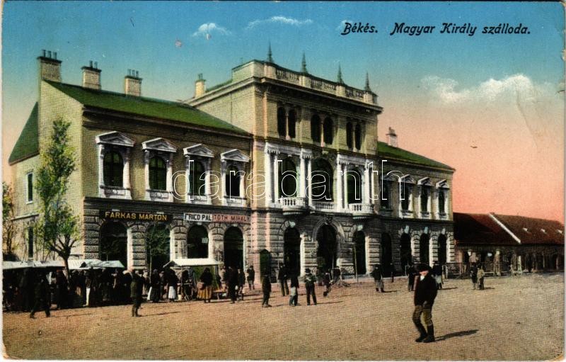 1917 Békés, Magyar Király szálloda, Farkas Márton, Fried Pál, Tóth Mih... https://www.darabanth.com/hu/471-Gyorsarveres/471.0/Kepeslapok/Magyarorszag~2000005/1917-Bekes-Magyar-Kiraly-szalloda-Farkas-Marton-Fried-Pal-Toth-Mihaly-uzlete-piac-Sch~II2586128