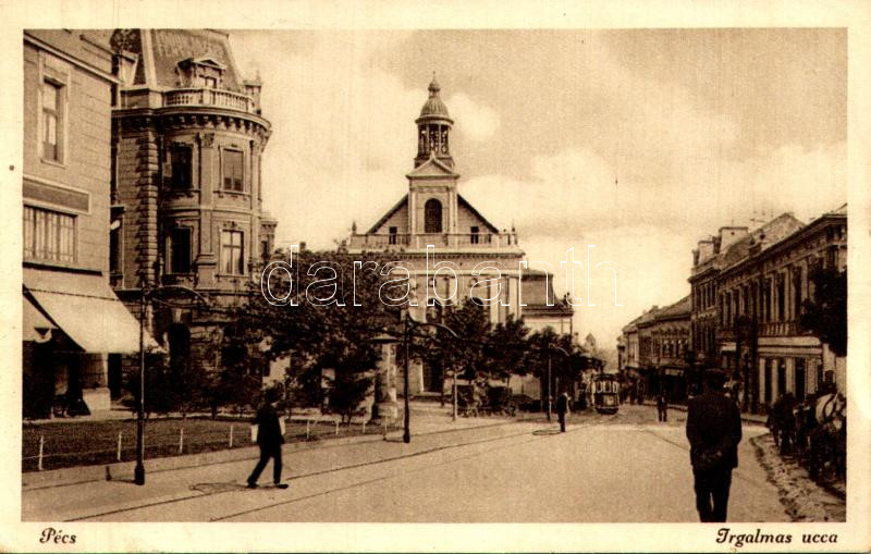 1935 Pécs, Irgalmas utca, villamos (EK) https://www.darabanth.com/hu/471-Gyorsarveres/471.0/Kepeslapok/Magyarorszag~2000005/1935-Pecs-Irgalmas-utca-villamos-EK~II3186734