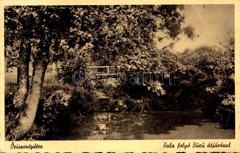 Leírás: 1941 Őriszentpéter, Zala folyó a Bürü átjáróval. Hangya szövetkezet kiadása (EB)