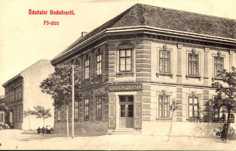 Leírás: Budaörs, Fő utca, gyógyszertár. Szailer Mihály kiadása