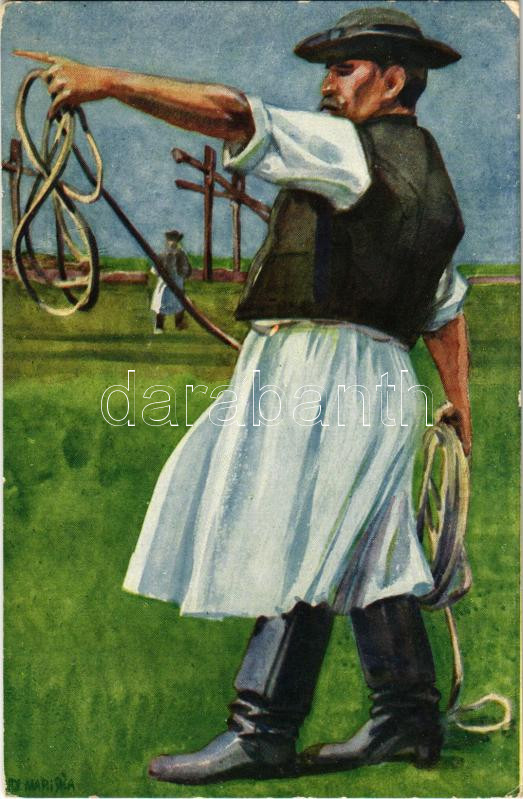 Hortobágy, Magyar népviselet, hortobágyi csikós s: Undi Mariska (EK) https://www.darabanth.com/hu/471-Gyorsarveres/471.0/Kepeslapok/Magyarorszag~2000005/Hortobagy-Magyar-nepviselet-hortobagyi-csikos-s-Undi-Mariska-EK~II3097251