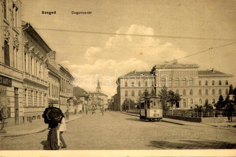 Szeged, Dugonics tér és szálloda, villamos,Tudományegyetem, üzlet https://www.darabanth.com/hu/471-Gyorsarveres/471.0/Kepeslapok/Magyarorszag~2000005/Szeged-Dugonics-ter-es-szalloda-villamos-Tudomanyegyetem-uzlet~II3185125