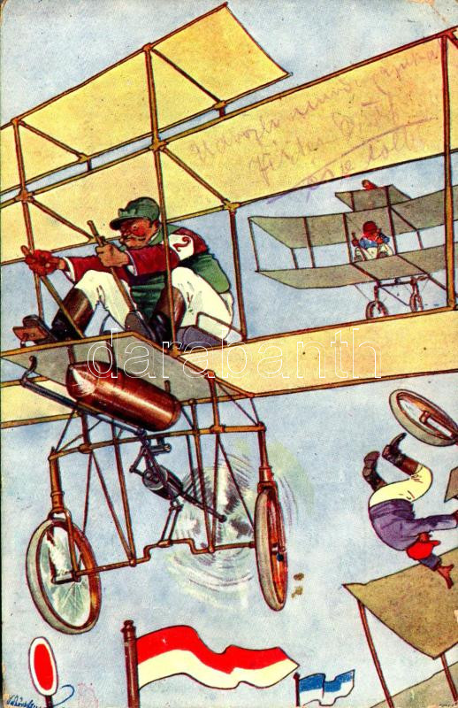 1909 Aircraft, pilot humour. B.K.W.I. 368-4. s: Schönpflug (r) https://www.darabanth.com/hu/471-Gyorsarveres/471.0/Kepeslapok/Muveszlapok~2000051/1909-Aircraft-pilot-humour-BKWI-368-4-s-Schonpflug-r~II3188114