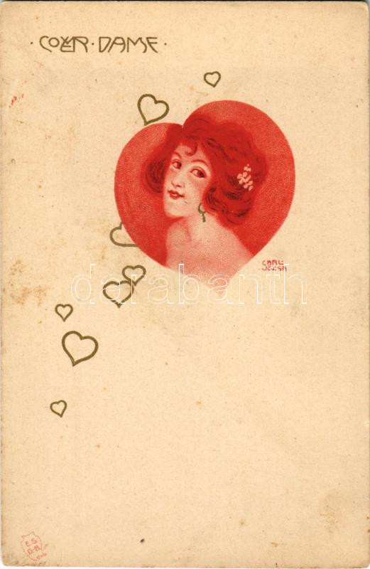 Coeur Dame / Art Nouveau lady with hearts. E.S.D.B. litho s: Carl Józs... https://www.darabanth.com/hu/471-Gyorsarveres/471.0/Kepeslapok/Muveszlapok~2000051/Coeur-Dame-Art-Nouveau-lady-with-hearts-ESDB-litho-s-Carl-Jozsa-fl~II3043378