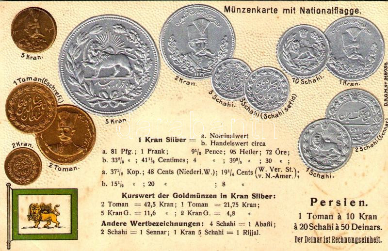 Persien. Münzenkarte und Nationalflagge / Persian set of coins, curren... https://www.darabanth.com/hu/471-Gyorsarveres/471.0/Kepeslapok/Numizmatika~2000055/Persien-Munzenkarte-und-Nationalflagge-Persian-set-of-coins-currency-exchange-chart-and-flag-E~II3187861