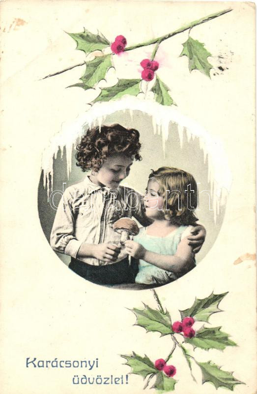 'Karácsonyi üdvözlet' / Christmas, children, mushroom (EK) https://www.darabanth.com/hu/471-Gyorsarveres/471.0/Kepeslapok/Udvozlolapok-Unnepek~2000085/Karacsonyi-udvozlet-Christmas-children-mushroom-EK~II1216231