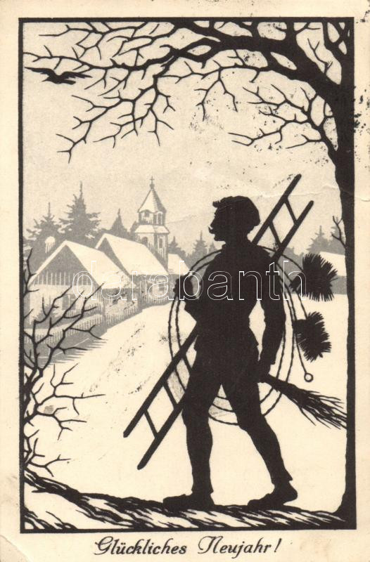 New Year, chimney sweeper (fa) https://www.darabanth.com/hu/471-Gyorsarveres/471.0/Kepeslapok/Udvozlolapok-Unnepek~2000085/New-Year-chimney-sweeper-fa~II807000