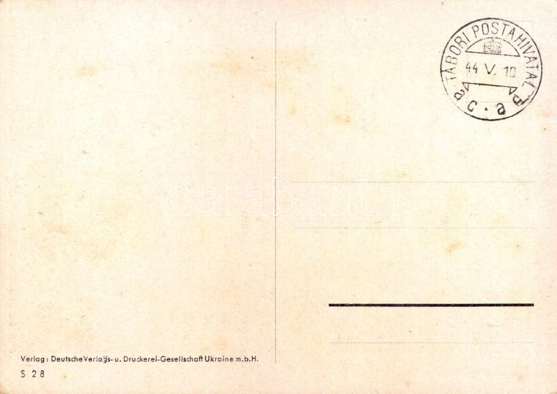 Leírás: Kremenets, Kremianez, Krzemieniec; Tatarenburg. Verlag Deutsche Verlags- u. Druckerei-Gesellschaft Ukraine m.b.H. S. 2/8. / castle+ "1944 Tábori Postahivatal a. c." (fl)