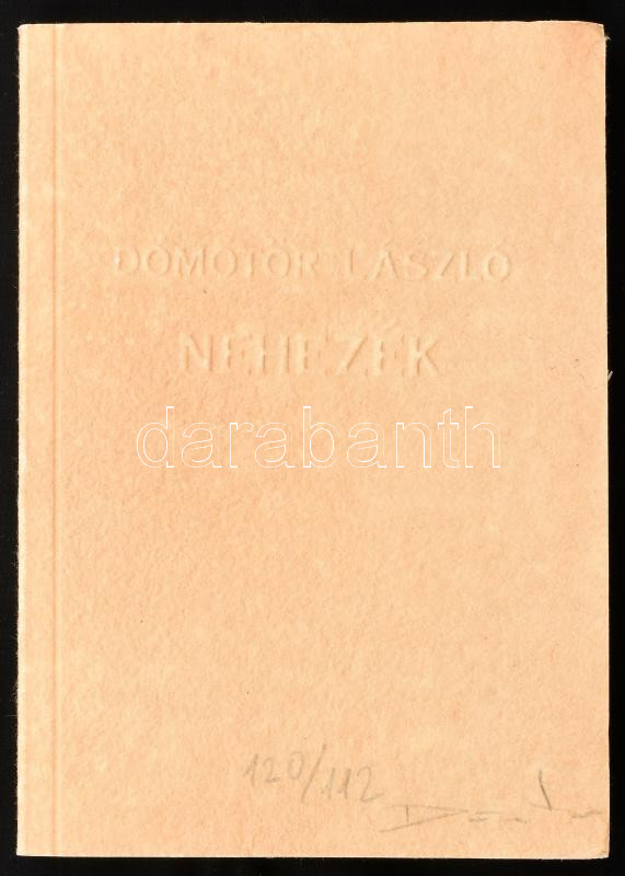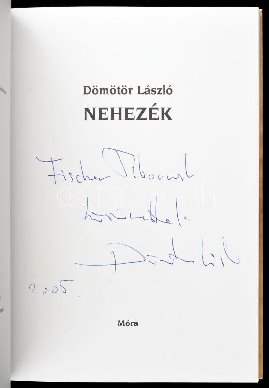 Dömötör László: Nehezék. Bp., 2005, Móra. Egészoldalas illusztrációkkal. Kiadói papírkötés. A borítón kézzel számozott (120/112.) és aláírt, a címlapon a szerző által DEDIKÁLT példány.
