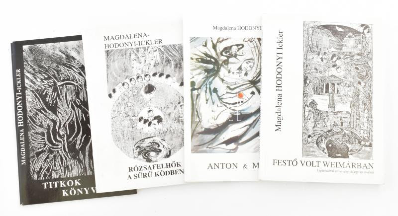Leírás: Magdalena Hodonyi-Ickler 4 db DEDIKÁLT könyve: Festő voltam Weimárban; Anton & Miriana; Rózsafelhők a sűrű ködben; Titkok könyve. Kiadói papírkötés.