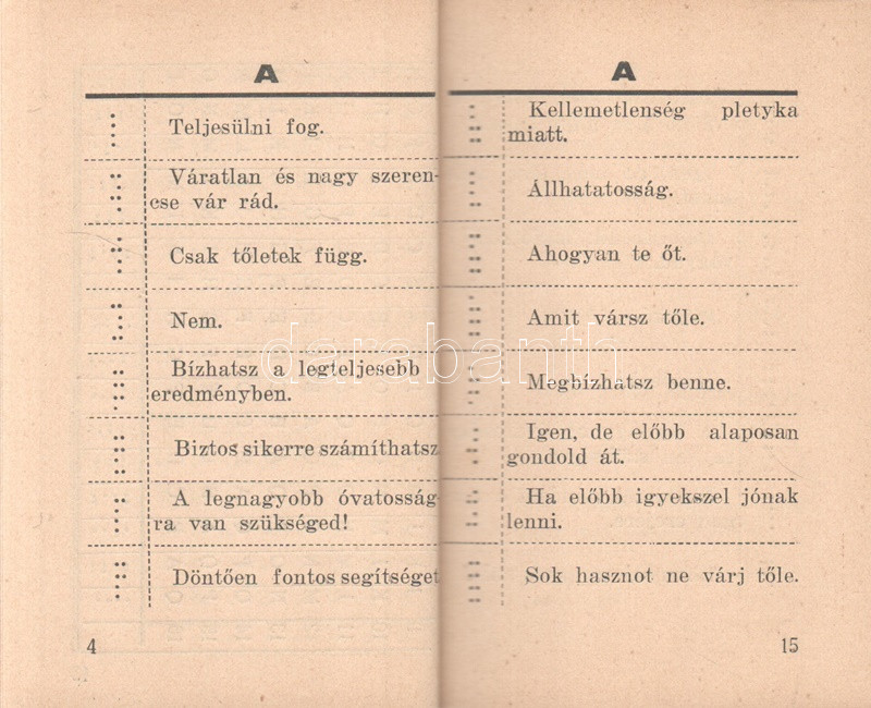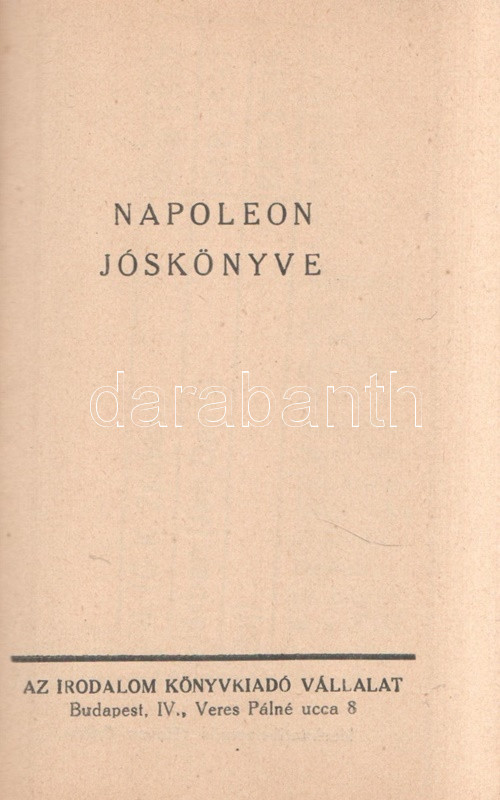 Az ,,Orákulum - Napoleon jóskönyve" címen megjelent szerelmi és üzleti jóskönyv előszavában kijelenti, hogy a kötetet káldeus és egyiptomi hagyományokra támaszkodva a 13. században alkotta meg egy arab csillagász, Napóleon pedig minden fontosabb döntése előtt segítségéért folyamodott. A kötet e deklarációt követően azonnal rátér a szerelmi és üzleti jóskönyv használati utasítására, majd a pontozókód szerinti - értelemszerűen inkább kedvező, mint kedvezőtlen - jósválaszok olvashatóak, táblázatos formátumban.