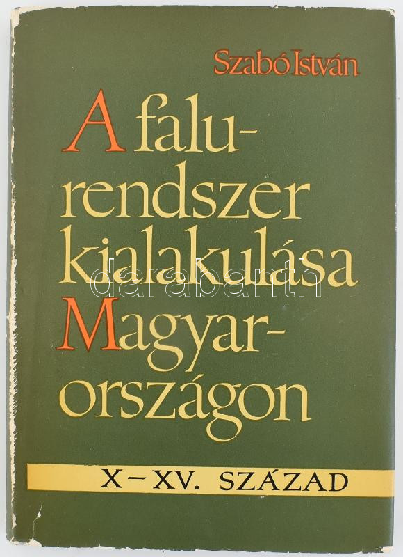 Szabó István: A falurendszer kialakulása Magyarországon. (X-XV. század.) Bp., 1966, Akadémiai Kiadó. Megjelent 700 példányban. Kiadói egészvászon-kötés, kiadói kissé sérült papírborítóval, címlapon tollas névbejegyzéssel, majdnem mindegyik lapon ceruzás jelölésekkel és jegyzetekkel, egyébként jó állapotban.