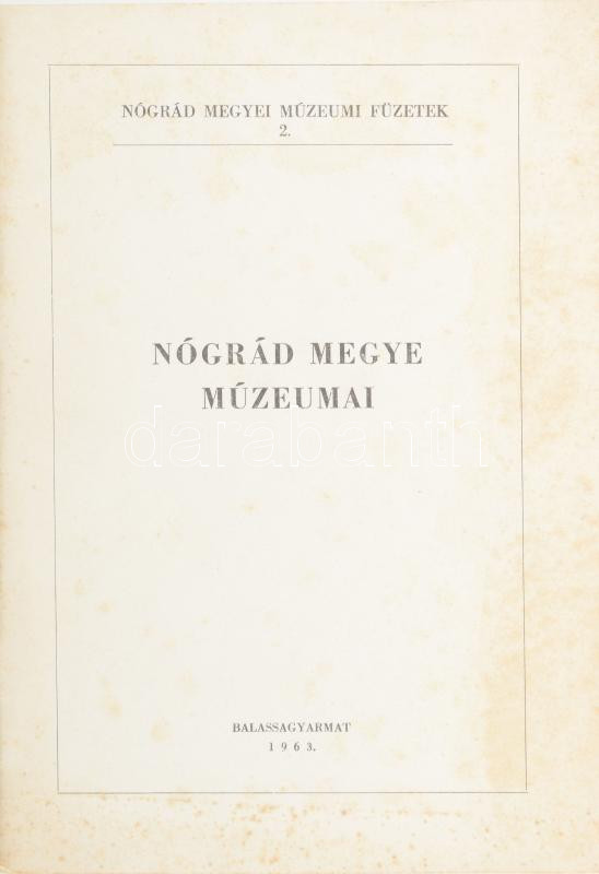 Nógrád megye múzeumai. Összeáll.: Belitzky János és Zólyom József. Balassagyarmat, 1963, Nógrád m. Múzeumok Igazgatósága. Kiadói papírkötés. Megjelent 1200 példányban.