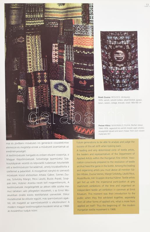 Szombathelyi Textilbiennálék 1970-2000. Szerk.: Sütő Éva. Szombathely, 2002, Szombathelyi Képtár. Gazdag képanyaggal illusztrálva. Magyar és angol nyelven. Kiadói papírkötés.