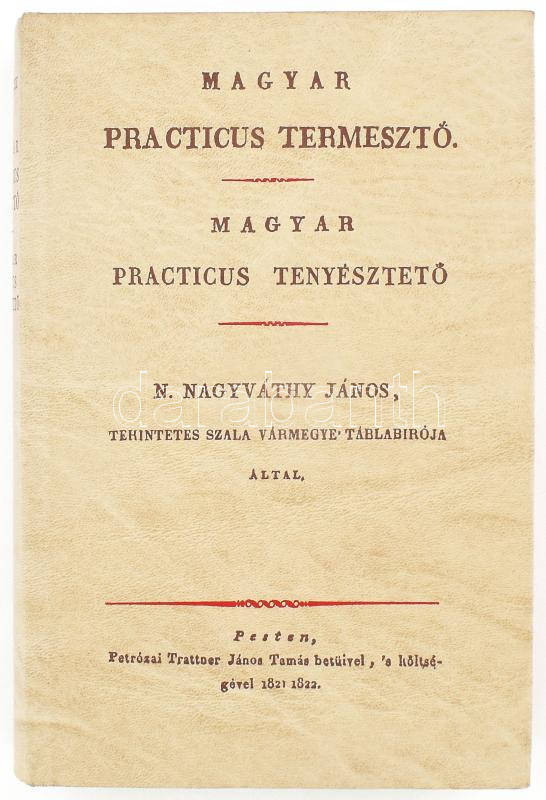 Nagyváthy János: Magyar practicus termesztő. / Magyar practicus tenyésztető. Bp., 1984, ÁKV. Reprint kiadás. Kiadói műbőr-kötés, jó állapotban. Az eredetileg 1821-ben, ill. 1822-ben megjelent művek hasonmás kiadása, egy kötetben.