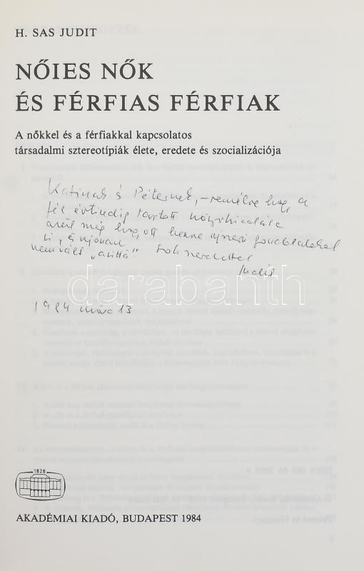 2 db könyv - H. Sas Judit: Közelmúlt. Rendszerváltások, családtörténetek. DEDIKÁLT! Bp., 2003, Új Mandátum Könyvkiadó. Kiadói papírkötés, jó állapotban. + Nőies nők és férfias férfiak. DEDIKÁLT! Bp., 1984, Akadémiai. Kiadói kartonált kötés, jó állapotban.