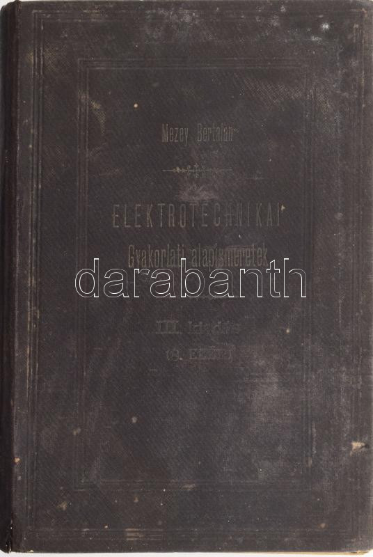 Mezey Bertalan: Elektrotechnikai gyakorlati alapismeretek. Bp., 1913, "Thália". Harmadik kiadás (8. ezer). 532+XVI. Kiadói egészvászon-kötés, kissé sérült gerinccel, kopott borÃtóval, laza kötéssel, néhány lap kissé foxing foltos.