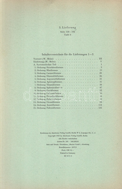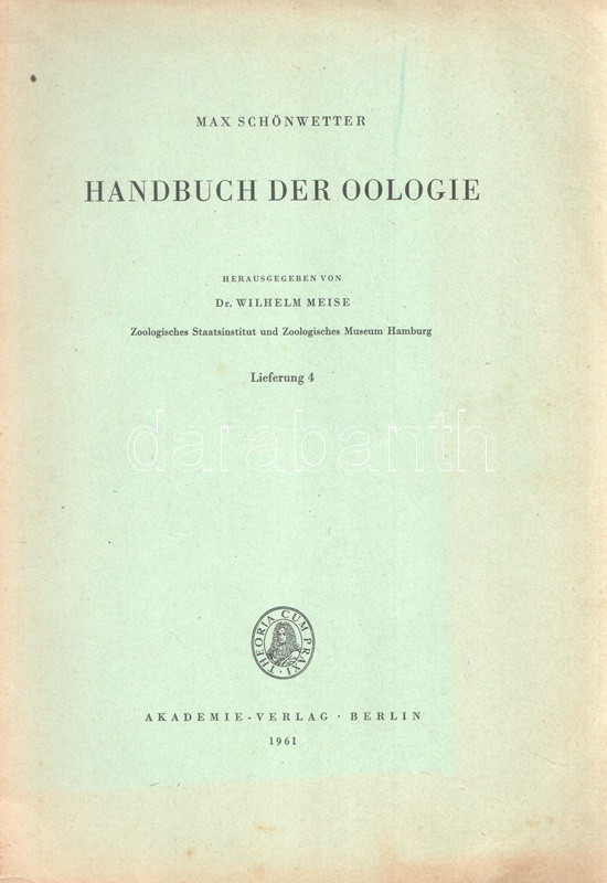 Handbuch der Oologie. Herausgegeben von Wilhelm Meise. Lieferung 1-5. (Öt füzetben.)