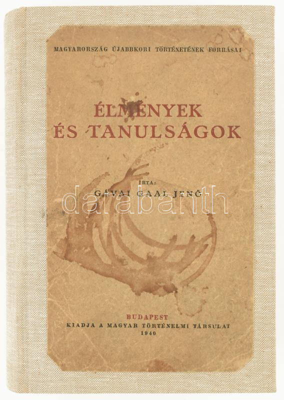 Gávai Gaal Jenő: Élmények és tanulságok. Naplók, Emlékiratok Történelmi Művek. Magyarország Újabbkori Történetének Forrásai. Bp., 1940, Magyar Történelmi Társulat,("Pátria"-ny.), LXVI+931 p.+3 t. Átkötött modern egészvászon-kötés, foltos.
