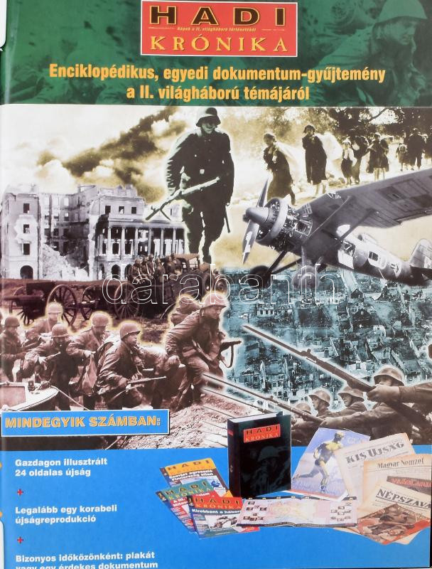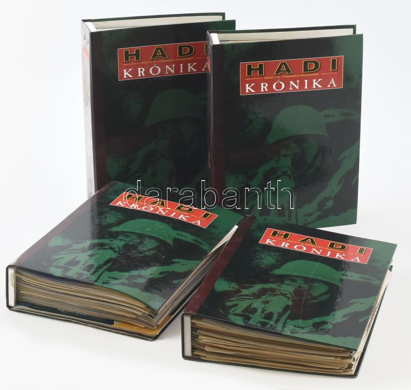 Hadi Krónika. Képek a II. világháború történetéből. 1-80. szám + Tárgymutató. + A háború felé vezető út. 1933 - 1939. + Prospektus. Teljes sorozat! Bp., Eaglemoss Int. Ltd. Magyarországi Fióktelepe. Kiadói mappákban, lefűzve, jó állapotban. 4 vastag mappa rengeteg facsimile nyomtatvánnyal
