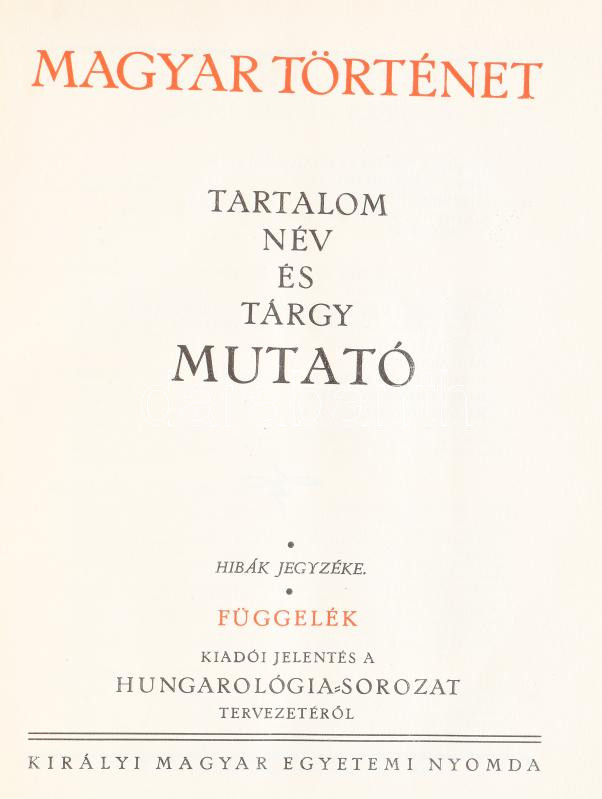 Hóman Bálint - Szekfű Gyula: Magyar történet. 1-8. köt. (3. kötet hián...