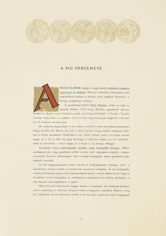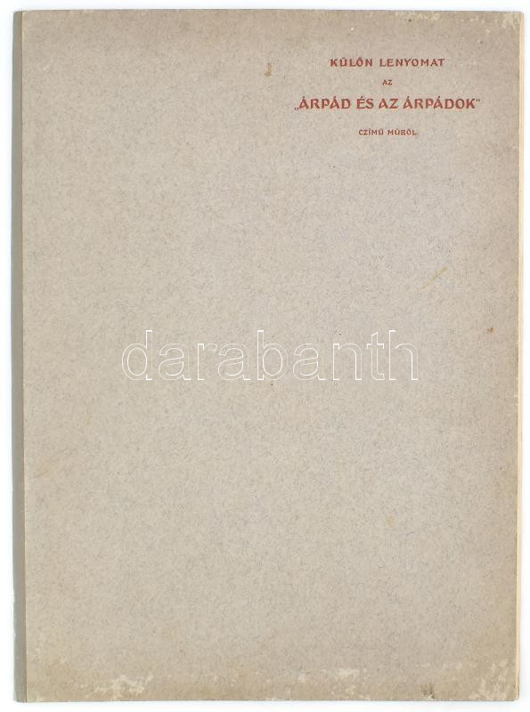 Külön lenyomat az "Árpád és az Árpádok" czimű műből. 1908. Csánki Dezső: A mű története. VII+1p. Összefoglalás. Árpád jellemzése. 215-226+1p. Néhol kissé sérült papírkötés.