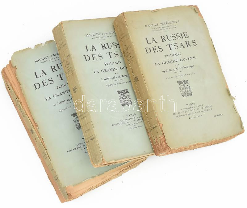 Paléologue, Maurice:La Russie des Tsars pendant la Grande Guerre I-III... https://www.darabanth.com/hu/471-Gyorsarveres/471.0/Konyvek/Konyvek-Tortenelem~5500006/Paleologue-MauriceLa-Russie-des-Tsars-pendant-la-Grande-Guerre-I-III-Paris-1922-Plon-372p-plus2~II3157086