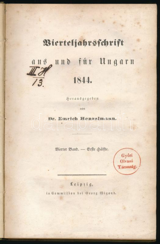 Vierteljahrsschrift aus und für Ungarn. 1844 3 kötet 1. füzet