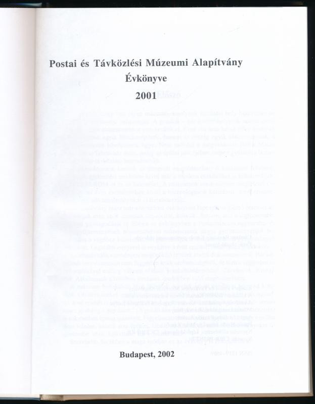 Leírás: Posta és Távközlési Múzeumi Alapítvány Évkönyve 2001. Bp., 2002, Posta és Távközlési Múzeumi Alapítvány. Kiadói kartonált kötés, jó állapotban.