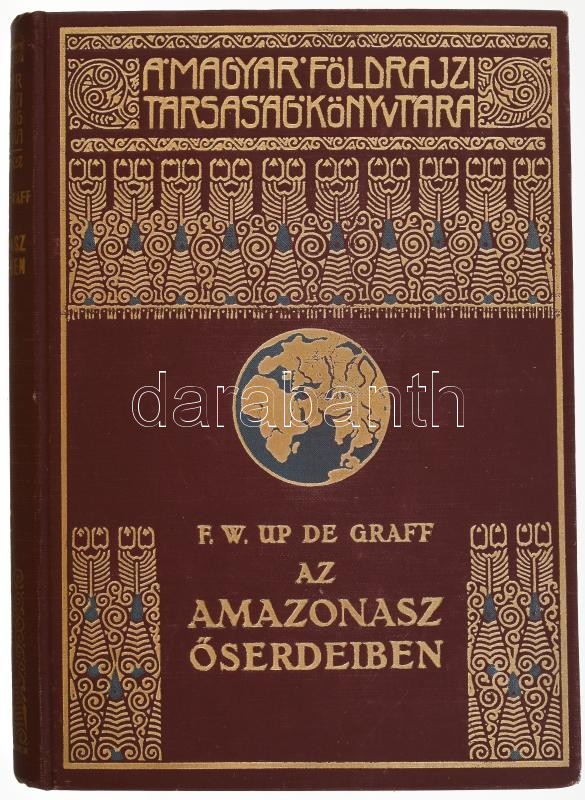 [Up de Graff, Fritz W. (1873-1927)]: F. W. Up de Graff: Az Amazonasz őserdeiben. Ford.: Halász Gyula. Magyar Földrajzi Társaság Könyvtára. Bp., [1933.], Lampel R. (Wodianer F. és Fiai), 1 t. (címkép)+164+4 p.+28 (fekete-fehér fotók) t. Egészoldalas, fekete-fehér fotókkal, és egy térképpel illusztrálva. Kiadói dúsan aranyozott egészvászon sorozatkötésben, a borítón kopásnyomokkal.