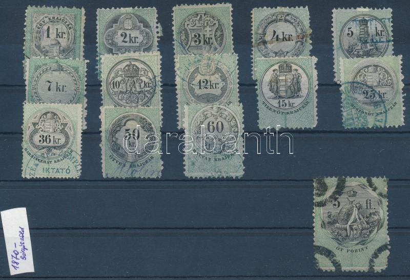 Leírás: 14 db régi okmánybélyeg stecklapon