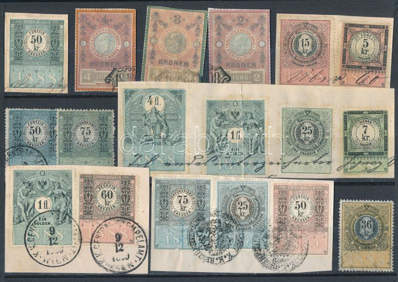 Leírás: 18 db régi osztrák okmánybélyeg főleg kivágásokon