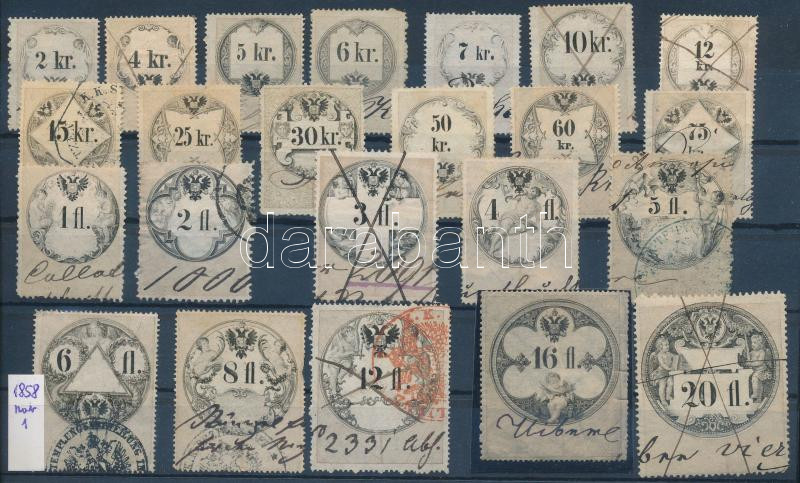 23 db régi okmánybélyeg stecklapon