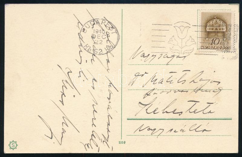 1940 Kiss Manyi (1911-1971) Kossuth- és Jászai Mari-díjas színésznő autográf üdvözlő sorai, és aláírása egy fotólapon, Matits Lajos (1902-1972) a Kékes-Szálló magaslati gyógyintézet főorvosa részére, 14x9 cm