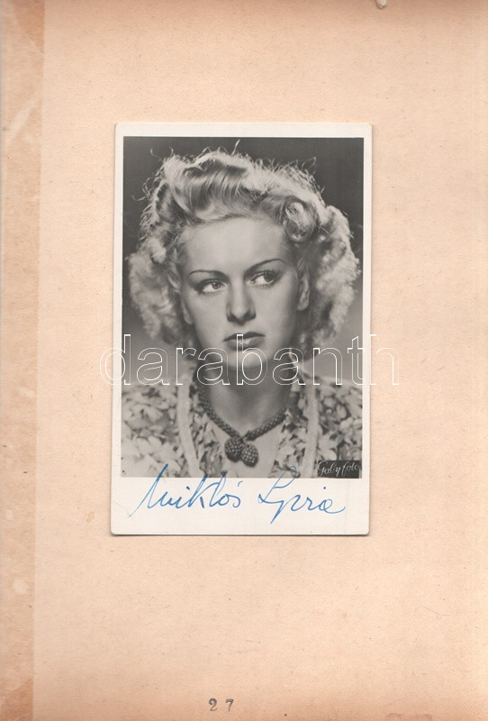 Leírás: Miklós Lívia (1913-1967) színésznő aláírt fényképe. Mérete: 140x85 mm, egy 245x168 mm-es kartonlapra ragasztva