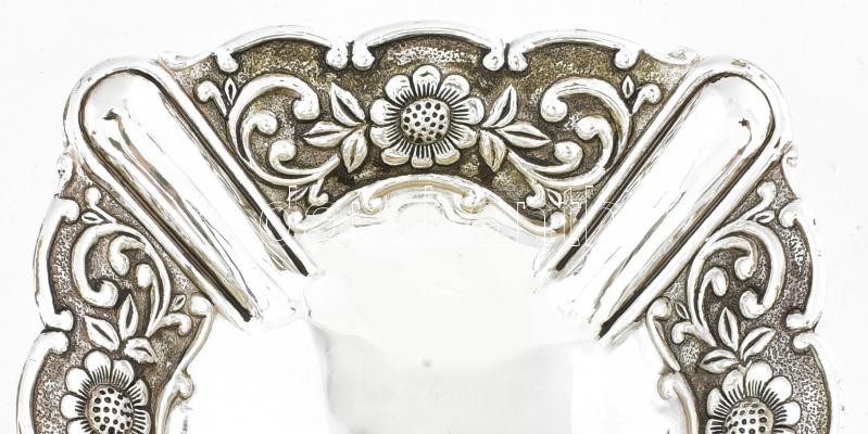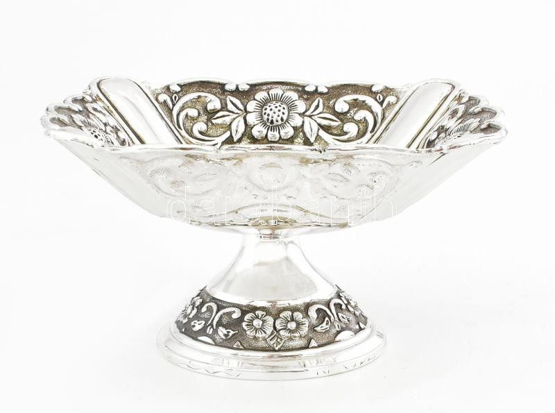 Leírás: Ezüstözött masszív fém kínáló tál, 17x17 cm