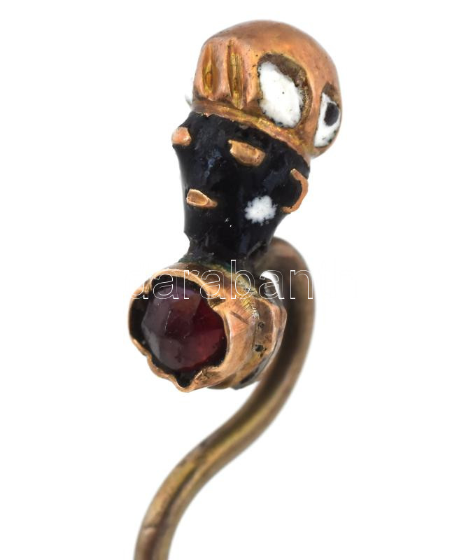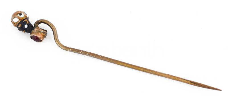 Leírás: Afrikai fej alakkal és kővel díszített nyakkendőtű, h: 5 cm