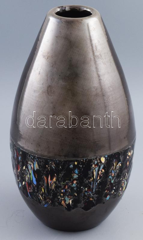 Leírás: Design fém váza, csorgatott zománc festéssel, jelzés nélkül, kopással, m: 31 cm