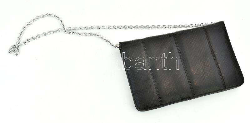 Leírás: Fekete kígyóbőr táska, fém lánccal, 24x15 cm