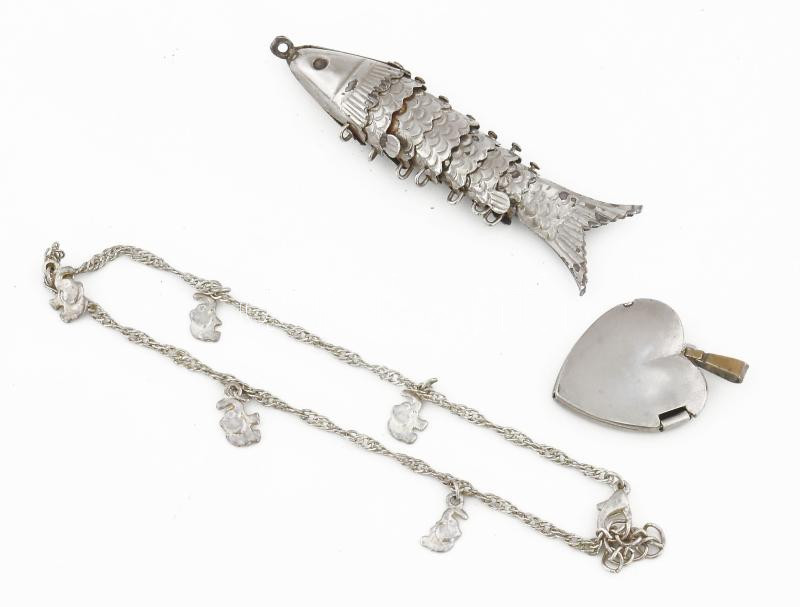 Leírás: Fém ékszer szett: medál, hal függő, bokalánc