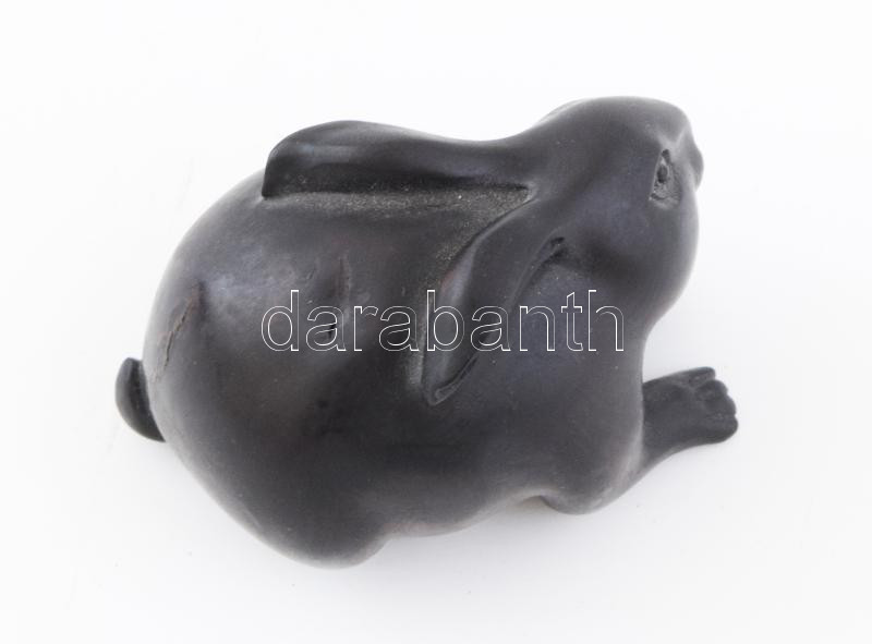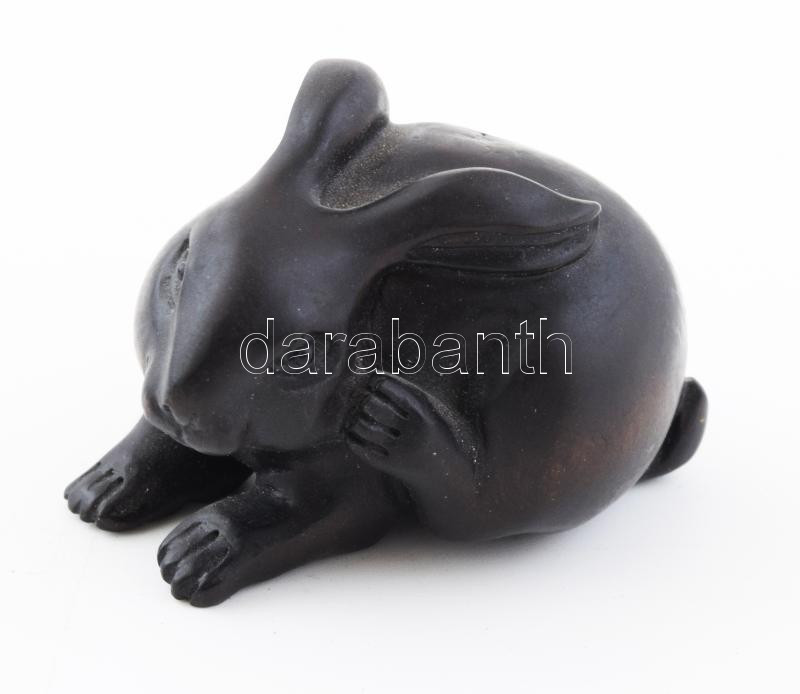 Leírás: Japán netsuke - vakarózó nyúl. Faragott, pácolt egzóta fa, felfűző lyukpárral, jelzett, h: 5,5 cm