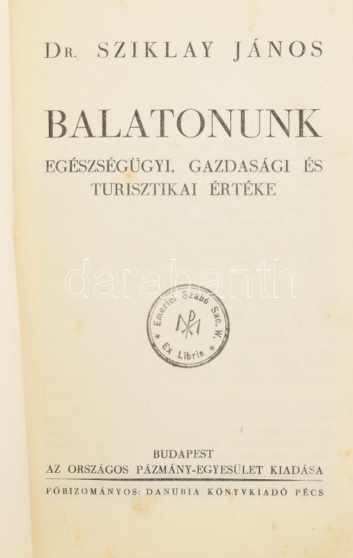 Sziklay János: Balatonunk. Egészségügyi, gazdasági és turisztikai érté... https://www.darabanth.com/hu/471-Gyorsarveres/471.0/Mutargy-papirregiseg-egyeb/Hajozas-Balaton~1000007/Sziklay-Janos-Balatonunk-Egeszsegugyi-gazdasagi-es-turisztikai-erteke-Bp-en-Orsza~II3190934