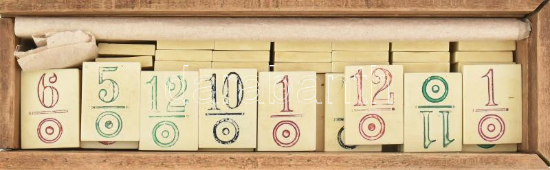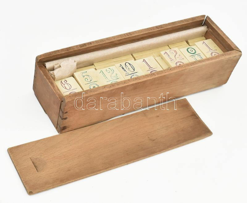 Régi táblás römi, fa dobozban, h: 27 cm